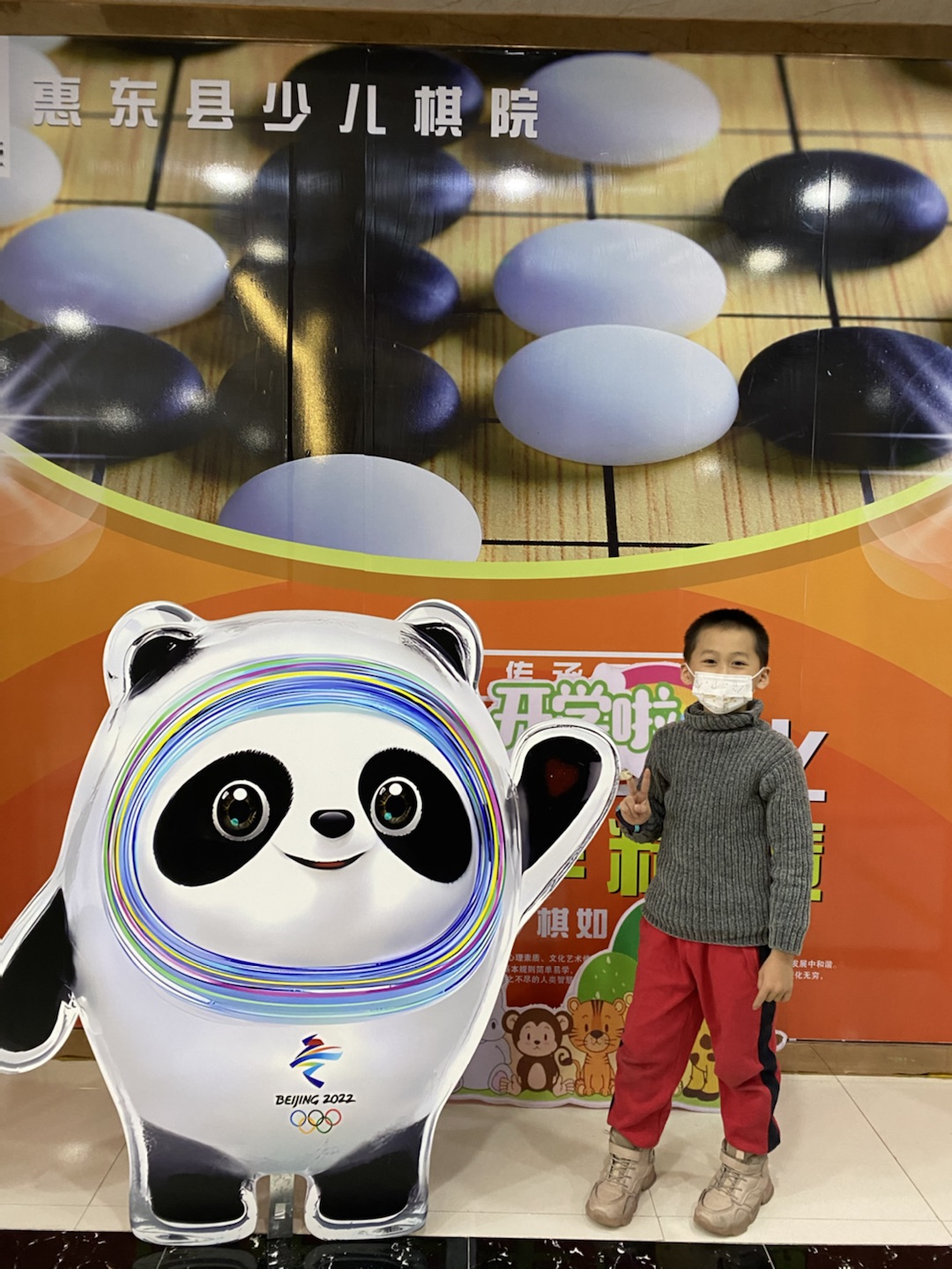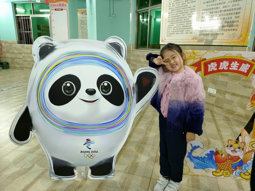 “耶!終于和冰墩墩合影啦~”